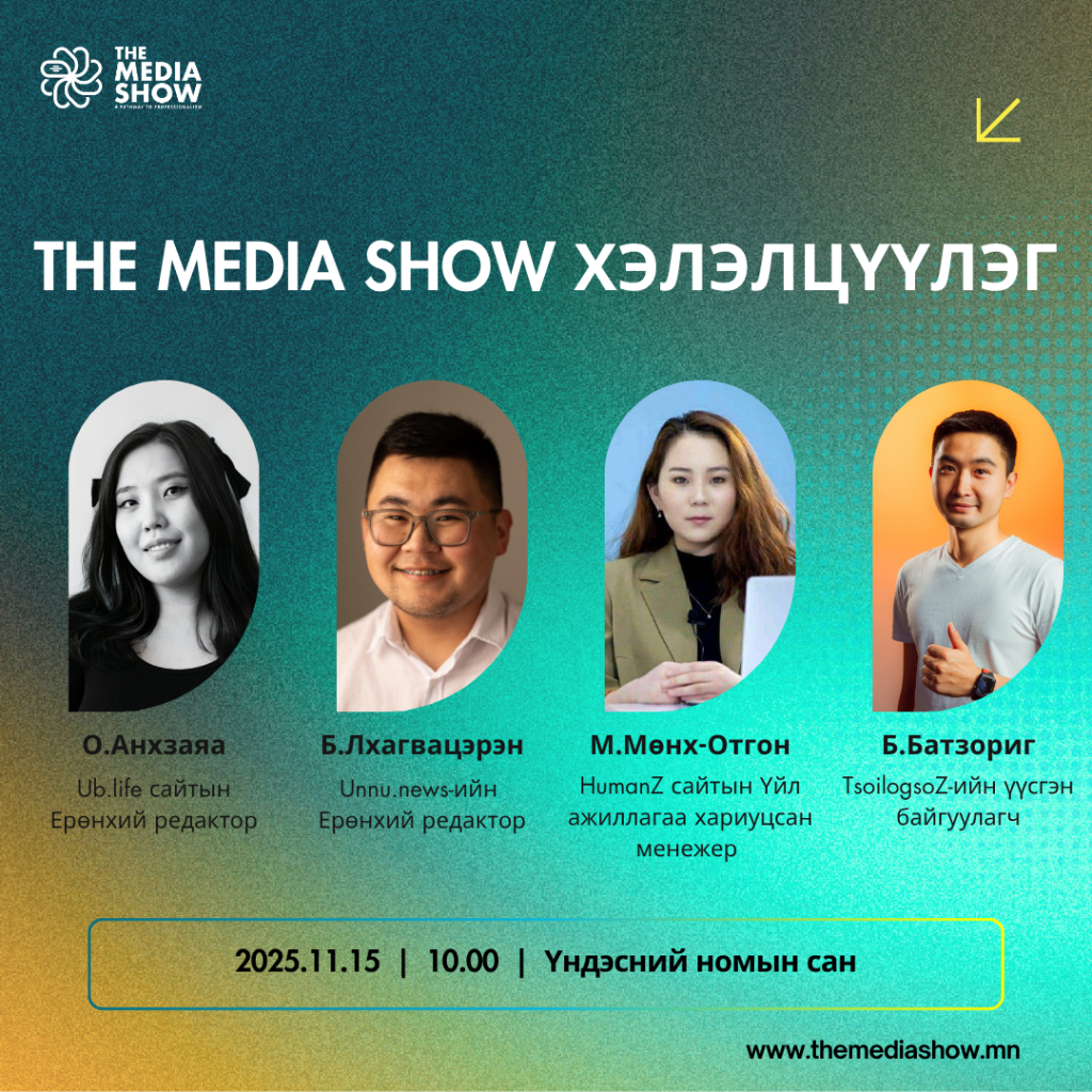 Хэвлэл мэдээллийн экосистемд чин эрмэлзэлтэй, мэргэжлийн, сахилга баттай соёлоор дамжуулан шударга, чадамжтай хэвлэл мэдээллийг төлөвшүүлэхэд хувь нэмрээ оруулах зорилготой “The Media Show 2025“ арга хэмжээ 11 дүгээр сарын 15-нд Үндэсний номын санд болох гэж байна. Энэ арга хэмжээ нь сэтгүүлч, сэтгүүл зүй сонирхогчид төдийгүй контент бүтээх, бичиж туурвих сонирхолтой, хэвлэл мэдээллийг ойлгохыг хүссэн хэн бүхэнд нээлттэй зохион байгуулагддаг билээ.